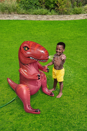 Realistic dinosaur print that will stimulate your child’s imagination Dino's snout is built-in sprinkler Sprinkler easily attaches to a garden hose.