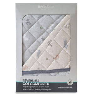 This classic diamond quilted comforter is made from premium cotton jersey for softness and comfort. Made with a lightweight filling for use all year round. Its generous size & padded surface makes it ideal to be used as a playmat for tummy time. It is reversible for versatility, featuring a charming all over print on both sides.
