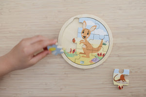 Meet the cuddly companion every little adventurer needs, the Wooden 9-Piece Jigsaw Puzzle Kangaroo from Koala Dream.