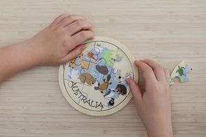 Embark on a delightful Aussie adventure with the Wooden 9 Piece Jigsaw Puzzle Australian Animal Map from Koala Dream. Designed right here in Australia, this charming puzzle features a vibrant map of the land Down Under, surrounded by a collection of our most iconic creatures.