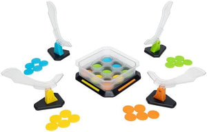 The first to get three in a row wins, but look out - another player can land one of their discs on top of yours and steal your victory!