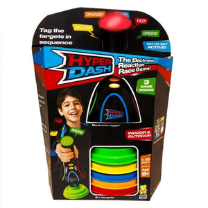Get ready to move with Hyper Dash – the ultimate race-and-react game that puts your speed, memory, and reflexes to the test! Play solo or race against up to 10 players. Set your targets, grab the electronic tagger, and let the lights and voice commands guide the way!