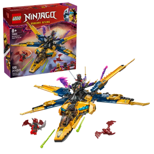 Boys and girls aged 8 plus can recreate scenes from season 3 of the NINJAGO® Dragons Rising TV show with Ras and Arin’s Super Storm Jet (71833).