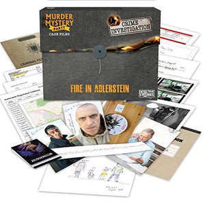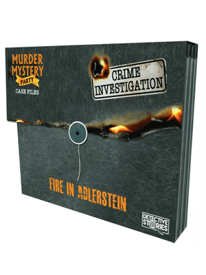 In the Murder Mystery Party Case File Fire in Adlerstein, players work to solve a murder using the case file and evidence provided.