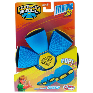 Throw a disc, catch a ball! Phlat Ball Jr is a unique sports toy that transforms from a 6-inch flying disc to a 3-inch ball when caught.
