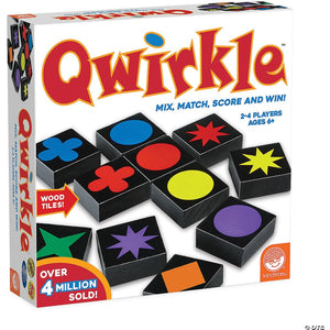 Players score points by building rows and columns of brightly-coloured tiles that are either all the same colour or all the same shape, without creating duplicates; create a line of all six in a row, and you score a 'Qwirkle.'