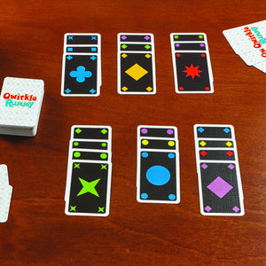 Qwirkle Rummy is the fun family card game where players create sets by matching shapes or colours. Any player can add to any set or switch cards in the sets, but the real pay off happens when a set of all 6 is completed and a Qwirkle is scored. The player with the most Qwirkles after the last card is drawn wins the game.