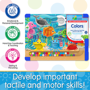 This fun and colourful hands-on “sea life” magnetic tray puzzle helps children to learn their colors in a fun and engaging way.