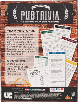 Ultimate Pub Trivia is the challenging and fun team trivia game where every player can shine with five different categories of play – Athletic Feats, We’re Booked, Pop Culture, Geek Chic & Past, Present & Future.