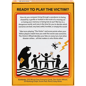 Take turns playing “The Victim” and score points when your fellow players match how you rank five worst-case scenarios.
