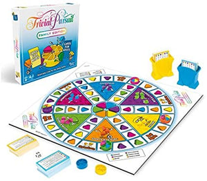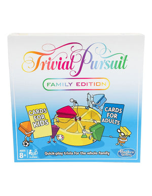 It’s the quick-play family trivia game with 2,400 questions. Gather everyone together for a brilliant gaming experience! The Trivial Pursuit Family Edition game features fresh questions and a quick pace, including the Showdown challenge where 2 players compete for a wedge simultaneously. Play individually or in teams, taking turns moving around the board and answering questions correctly to win wedges. This game is packed with laughter and learning for a party especially designed for families. Family members can test their smarts with question after question in 6 categories: Geography, Entertainment, History, Sports and Leisure, Arts and Literature, and Science and Nature. Be the first player or team to earn each of the 6 category wedges, and answer a final question correctly to win!
