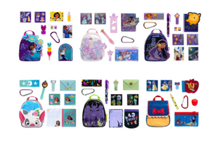 Unzip and open the backpack to reveal 6 of the cutest Disney stationery inside. What will you find? There could be tiny pencils, pens, erasers, notebooks, postcards, rulers, stickers and more!
