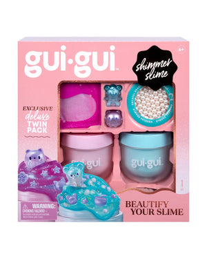 Double-up the shine to your beautified slime with the exclusive Gui Gui Shimmer Deluxe Duo Pack. Open it up to uncover everything you need and follow the 5 easy steps to slay your scented slime.