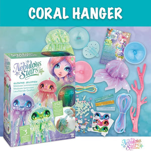 Contents:3 glow in the dark domes, Coral branch hanger, 3 Fabric dome covers, 63 Glow in the dark beads, 70 colourful beads, 3 Mash tube cords, Ribbon, Glow in the dark strings and plastic wire, 3 Glitter stickers, Coralia's Complete story and Colour instructions.