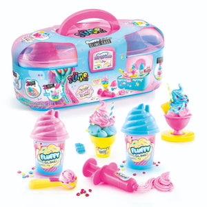 Make your own fluffy ice cream slime sundaes with the Fluffylicious Slime Case. Just add water to the fluffy slime mix, shake and you're ready to go. Add swirly icing and top your slime creations off with a straw, charm and decorations.