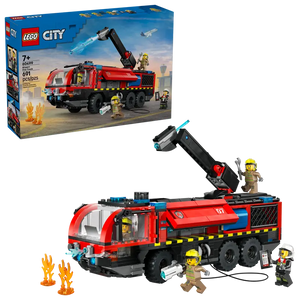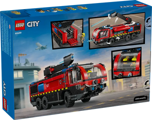 Mobilize the LEGO® City Airport Fire Truck (60499) for kids ages 7 and up. This realistic emergency vehicle toy features a 360° rooftop extinguisher, opening side equipment bays and tool storage compartments.
