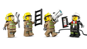 Kids can turn a dial to steer the truck, launch water elements from the extinguisher and remove the engine for repairs. The toy truck comes with 8 chunky rubber tires and a detailed cockpit with seating for the 4 firefighter minifigures. Just add a sprinkle of imagination to ignite hours of heroic firefighting adventures.