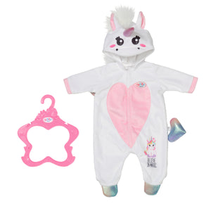 BABY born simply loves dressing up. Right now, the unicorn onesie is her favourite outfit. When she wears it, she dreams of a faraway land of magical fairies and mystical unicorns. The hood of the white overall is designed to look like the head of a unicorn.