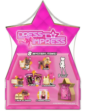 Become a runway star with this dazzling collection of Mystery Models. From the hottest fashion game, Dress to Impress, the Mystery Models Dolls are here to slay with the latest styles.