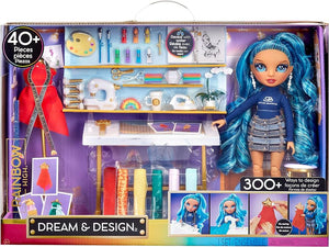 Introducing Skyler Bradshaw™ in her iconic RAINBOW HIGH™ Dream & Design Fashion Studio™ Playset. It comes with all the essentials: sewing machine, iron, fashion worktable, water-reveal sketch book, functional mannequin, real colourful Rainbow High™ fabrics and an exclusive Skyler Madison doll.