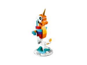 Imaginative kids aged 7+ can be transported to a mythical land for enthralling action with this 3in1 Magical Unicorn (31140) building set. It features a unicorn toy with a golden horn, colorful tail, and posable legs and hooves. It can be presented in 2 different positions: standing on 4 legs or reared up on its 2 hind legs for an iconic pose and displayed on the set’s rainbow stand.