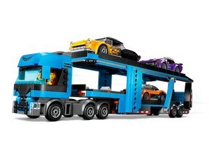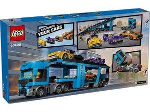 Toy Vehicle Transporter Treat a toy car enthusiast to this LEGO® City Car Transporter Truck with Sports Cars (60408) building set for ages 7 and up. This multi-vehicle playset features a toy car transporter truck with a detachable dual-level trailer for transporting the classic ’50s-style tail dragger,’70s-style muscle car and sleek electric supercar included with the set, plus 4 minifigures for imaginative role play and storytelling.