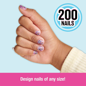 This nail design kit will inspire creativity and build confidence as girls express their style, designing their own manicures. Updated easy-paint polish applicators and a nail mask make it easier than ever to pop, paint, and press 200 nails of any size!