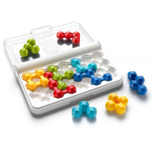 The puzzle pieces of IQ Twins are 2 peas in a pod, but not 2 of a kind! 10 puzzle pieces form 5 colour pairs. One piece will only fit on the board at 90° angles, while its twin