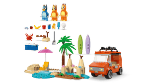 Bluey's Beach & Family Car Trip (11202) sees Bluey, Bingo and Mum pack the car for a fun-filled day at the beach. This interactive preschool toy for fans of the Bluey TV show is ideal for kids aged 4 and over, offering endless imaginative play and developing their creative and problem-solving skills.