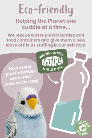 Living Nature’s Blue Budgerigar with interactive sound feature is a sweet plush pet bird toy ready to play with you on a flying adventure before settling down for a cuddle.