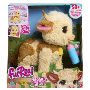 Get ready for farm pet fun, maximum giggles and furReal Maggie the Feed and Follow Cow!This a-MOO-zing mini pet comes from the Scottish Highlands and features over 50 different combinations of sound-and motion reactions!