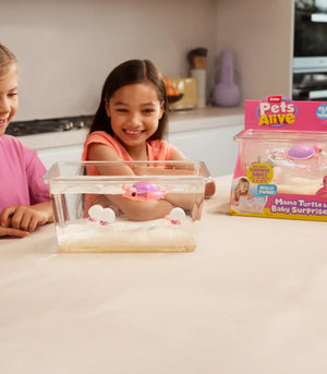 Simply fill the tank with water and watch as Mama Turtle gracefully swims around, bringing her underwater world to life. Mama Turtle doesn’t just swim - she also loves to get out of the water and walk on land, just like a real turtle. Create a realistic habitat, and enjoy countless adventures with Mama Turtle and her adorable family thanks to a resettable mechanism that means you can hatch her babies again and again.