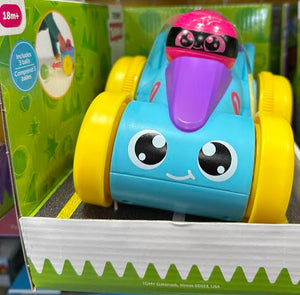 Load up the colourful balls into the see-through end of the back, and set off on your way. As your star-spangled wheels go around and round, the loaded ball will pop out. Watch the balls shoot out, then get friends and siblings to chase after them.