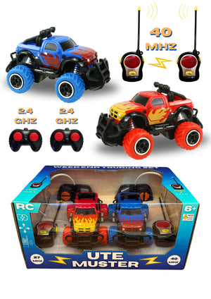 - The Ute Muster 2 pack of 4WD Monster Trucks also includes 2 Walkie Talkies.