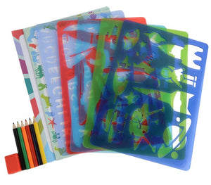 Includes: 5 colourful stencils, 20 sheets of patterned paper, 6 colouring pencils and a pencil sharpener.