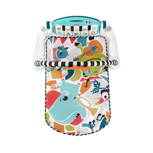 Get your little one moving, grooving (and learning) with the Glow and Grow™ Kick & Play™ Piano Gym from Fisher-Price®. This soft baby activity mat features a repositionable high contrast toy arch with 10 linkable toys. The removeable piano with 5 light up keys features a multi-coloured light show and has 4 musical settings that grow with baby from newborn to toddler.