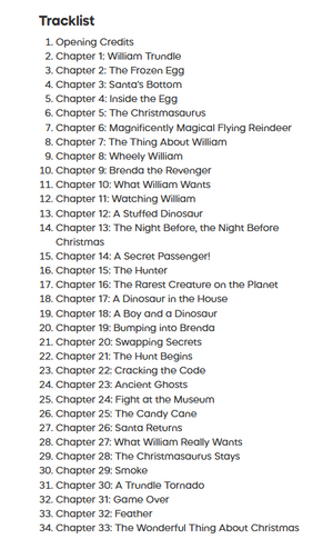 This is a full length, completely unabridged reading of The Christmasaurus and is perfect for cosy listening in the run up to Christmas and beyond!