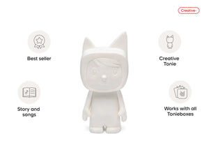 The Create Your Own Creative Tonie comes primed and undecorated for you to enjoy customizing to your design. Paint in the colors you want, add decorations, and then upload 90 minutes of your content for a one-of-a-kind Tonie. Visit the myTonies app to record your content, download free content from tonies®, or upload your own files.