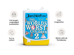 Have you met Gruesome Griselda, who nibbles on mouldy toast and bathes in slime? Or Competitive Colin, who turns even brushing his teeth into a race? In this second Tonie of terrible tales, David Walliams introduces ten more outrageously naughty children, each more hilariously horrid than the last. Marinated in mischief and mayhem, when your kiddos pop this Book Tonie on their Toniebox, they’ll be in for a disgustingly funny time. Based on the best-selling book by David Walliams.
