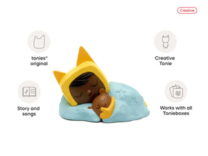 Creative Tonies have 90 minutes of recordable space to let little ones (and grown ups too!) add their own custom content to the Tonie. Record your own songs and stories with the mytonies app, or assign some of the FREE tales, tunes and fun in the app.