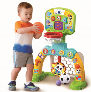 Win the learning game with the 3-in-1 Sports Centre. Score a basket or make a goal and the smart sports centre responds with cheerful sounds and phrases to keep the fun going!