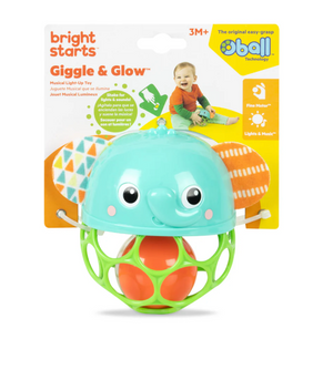 Get ready for giggles! The Bright Starts Giggle & Glow Musical Light-Up Toy will bring on the belly laughs. This blue electronic elephant is too cute for words with rosy light-up cheeks, silly sounds, and of course, giggles!