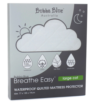 You and your baby can rest easy with the fitted Breathe Easy® Waterproof Quilted Mattress protector. The waterproof underlay stops leakages to help keep your child’s mattress clean with the extra comfort of cotton diamond-shaped padding on top.