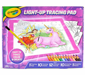 The Light-Up Tracing Pad - in Pink, Blue, or Teal lets kids trace and color detailed scenes. The ultra-thin tablet design and bright LED drawing surface make tracing easy. Start tracing right away with the content inside, then download 100s of images online. Paper-locking frame holds sheet in place to keep crisp tracing lines. The usable package converts into a shadow-box to trace in bright rooms and can also be used as a carry case for tracer and supplies!