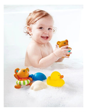 Try seeing which of the animals can squirt the farthest or set different targets! Colourful bath time squirting friends.