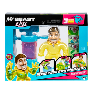 Attach MrBeast onto the special Creation Station and fill your MrBeast action figure with 3 unique fillings! Add water, pump the figure's body full of goo, and watch as MrBeast is brought to life before your eyes!