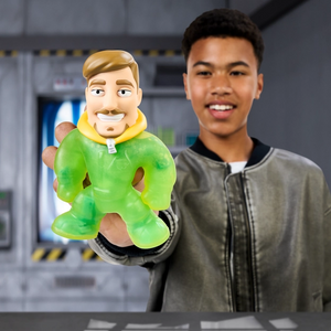 Now, with the MrBeast Lab Creation Station, you can create your own Stretchy Figure. Fill him with Cash Stacks, Feastables Bars, and goo, then stretch and squish him again and again!