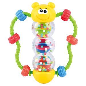 Stimulates sensory learning when you slide and spin beads, shake and tilt the rattle.