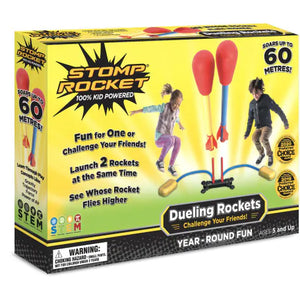 Fun for up to 4 kids that can play at the same time. Set includes duelling stand with 8 original high-flying Stomp Rockets.