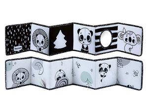 The black & white side offers baby essential visual stimulation from day one. Place the book at a convenient distance from baby (8-12 inches) and let them try and focus their gaze on the contrasting shapes and the mirror.
